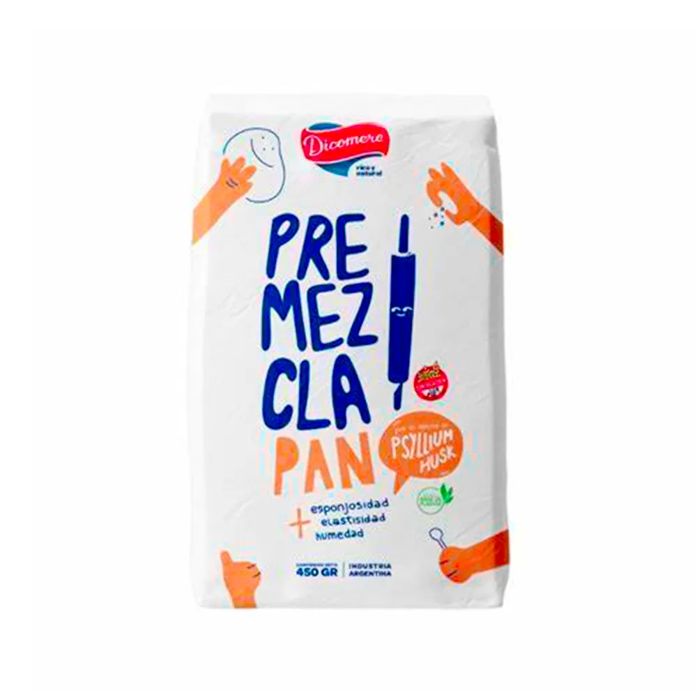 La premezcla para pan con psyllium husk de Dicomere es una mezcla sin TACC (trigo, avena, cebada y centeno), apta para celíacos y veganos, diseñada para preparar panes y otras masas. El psyllium husk le da a la masa elasticidad, humedad y esponjosidad.